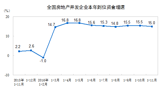 2016年1-11月份全國房地產(chǎn)開發(fā)投資和銷售情況
