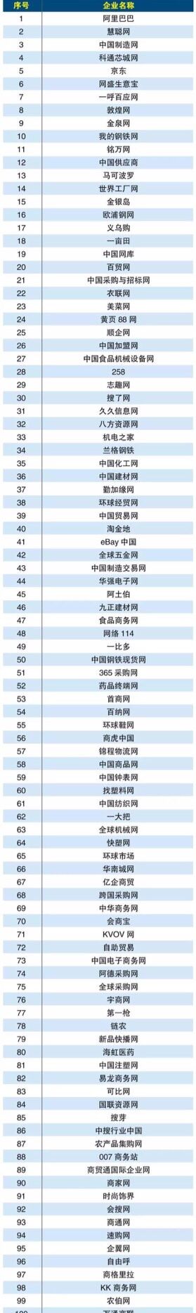 • 2016年中國(guó)B2B電商排行榜前100排名