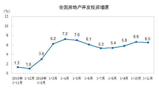 • 2016年1-11月份全國(guó)房地產(chǎn)開發(fā)投資和銷售情況