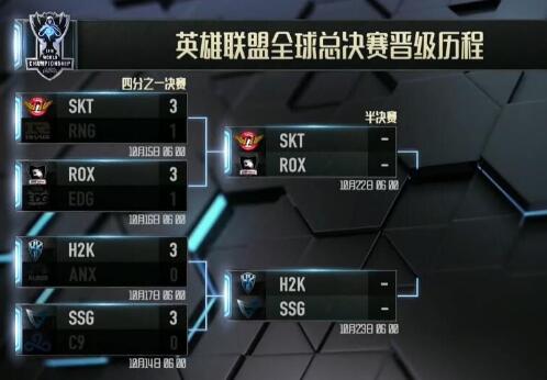 s6總決賽四分之一決賽在今日已經(jīng)全部結(jié)束,此次晉級(jí)四強(qiáng)的分別是來(lái)自LCK的三只隊(duì)伍,SKT、rox、ssg戰(zhàn)隊(duì)自己來(lái)自歐洲的H2K戰(zhàn)隊(duì),下面小編就為各位玩家們帶來(lái)lols6半決賽賽程一覽。