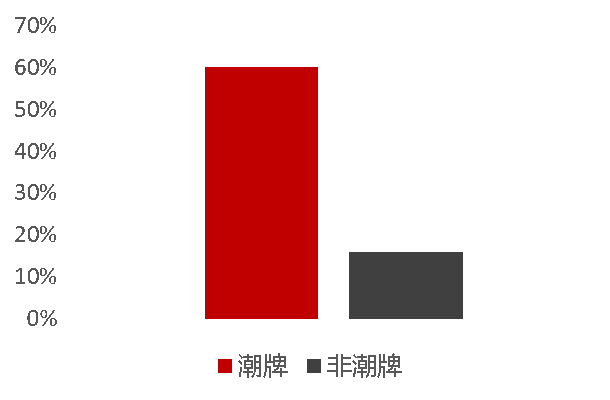 (3)2017年起,潮牌服裝市場規(guī)模增長迅速,潮牌消費增速是非潮牌的3.7倍。增長速度達(dá)到62%,而非潮牌消費增速是17%。潮牌的消費者數(shù)量增幅完勝非潮牌。