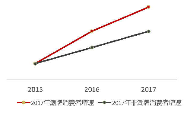 (4)從增長趨勢來看,自2015年起,潮牌服裝消費者的增長趨勢明顯遠(yuǎn)超非潮牌,且增速差距愈發(fā)明顯。