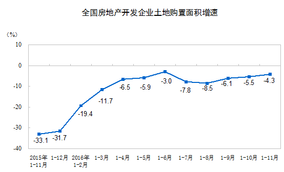 1-11月份,房地產(chǎn)開發(fā)企業(yè)土地購置面積19046萬平方米,同比下降4.3%,降幅比1-10月份收窄1.2個百分點;土地成交價款7777億元,增長21.4%,增速提高4.7個百分點。