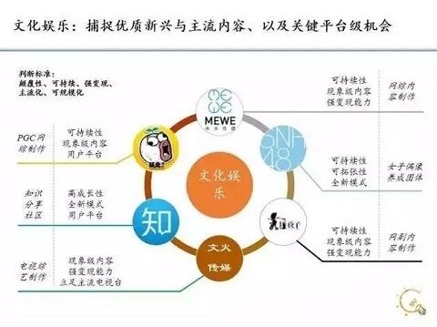 中間棕色的是最重要的,就是平臺的形成,我們認為平臺的形成還有幾年。當(dāng)有平臺時,人工智能就可以普及,應(yīng)用就可以井噴了,這個還要4到5年。這4到5年非常關(guān)鍵,因為在人工智能平臺未形成之前的這段時間,人工智能專家還會有非常獨特的優(yōu)勢,如果我們找到這些專家就有創(chuàng)業(yè)的機會。任何一個好的技術(shù)變成一個平臺都需要若干年時間的演化,移動互聯(lián)網(wǎng)如此,人工智能如此。我們在人工智能方面投了很多公司,我們獨特的優(yōu)勢是我們在中國、美國都有投資。美國的投資非常著重AI的領(lǐng)域,同時中國畢業(yè)的學(xué)生對AI興趣非常大,國內(nèi)外有很多頂尖媒體都報道了我們所投資的公司,例如《紐約時代》、《福布斯》雜志等都已經(jīng)報道了我們的項目。2.文化娛樂我們第二大投資領(lǐng)域應(yīng)該是文化娛樂領(lǐng)域。文娛我們看兩個方向。第一是IP,而且是可持續(xù)性的,呈高成長性的那種IP。第二要看用戶的平臺,當(dāng)然平臺是可遇不可求的,不是在創(chuàng)業(yè)第一天就做出一個平臺,這是兩個我們主要看到的方向。