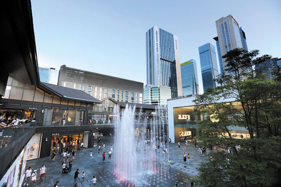 9月8日晚7點,在成都IFS金融中心網(wǎng)紅打卡地標處,寬闊的屋頂庭院,人潮攢動——街頭藝人在這里駐唱,人們駐足觀望聆聽;網(wǎng)紅帳篷、各式各樣的雕塑精心布置,人們可在此處休息、聊天、拍照,甚至可以觀看露天電影;身穿多彩飄逸漢服的年輕人在這里暢意閑逛;美食新品、IP周邊文創(chuàng)等潮品也在潮玩市集展示,獲取市場真實反饋……